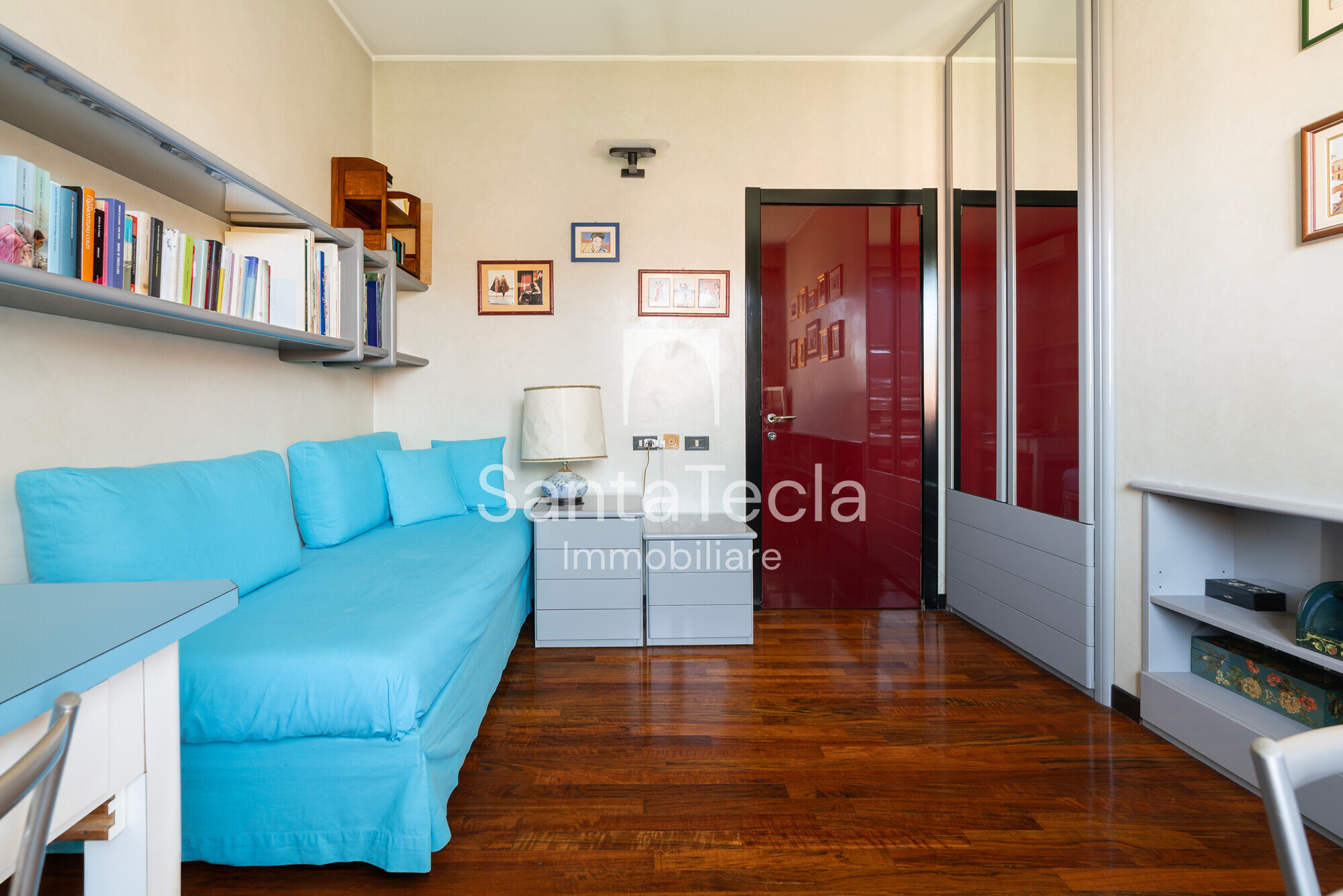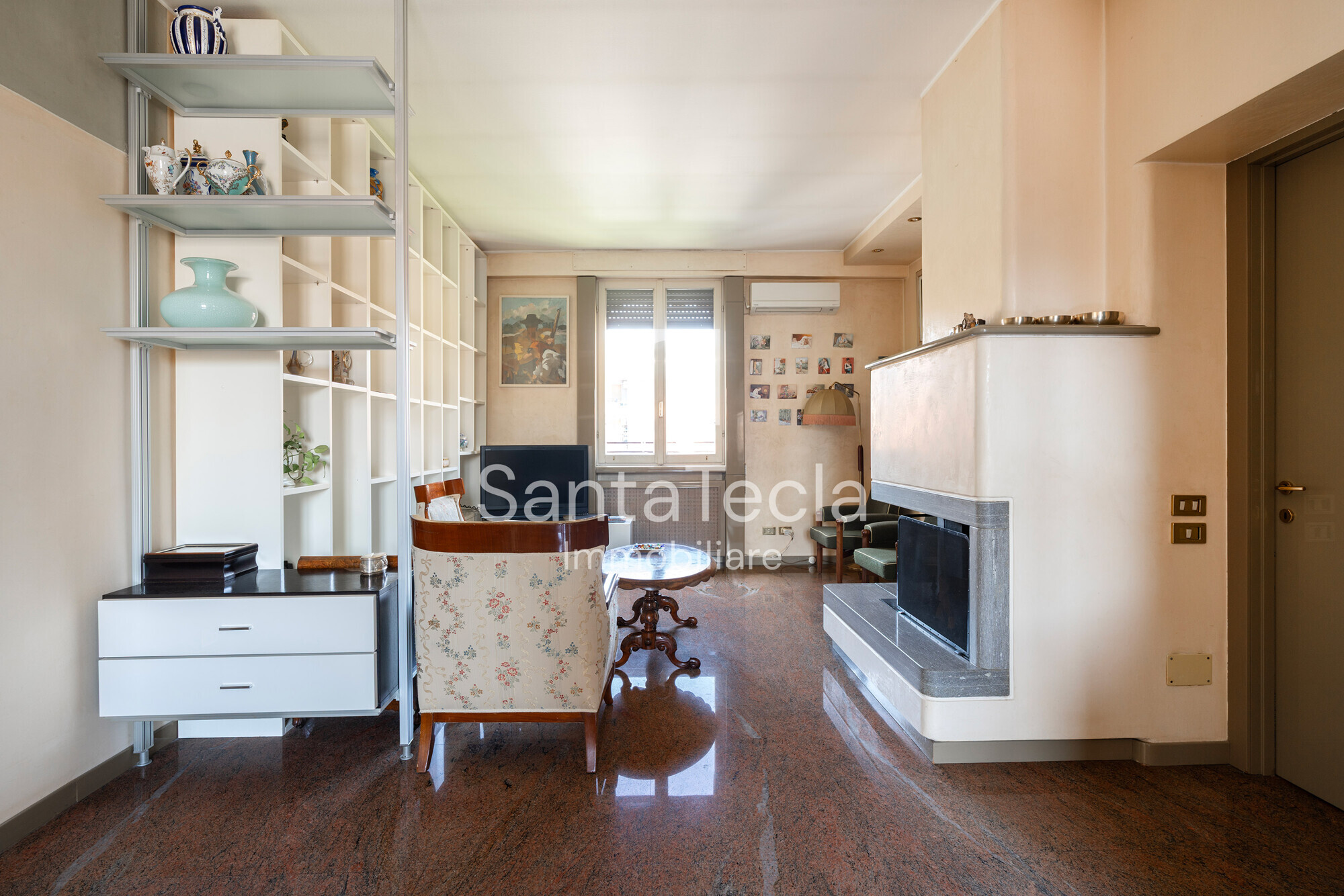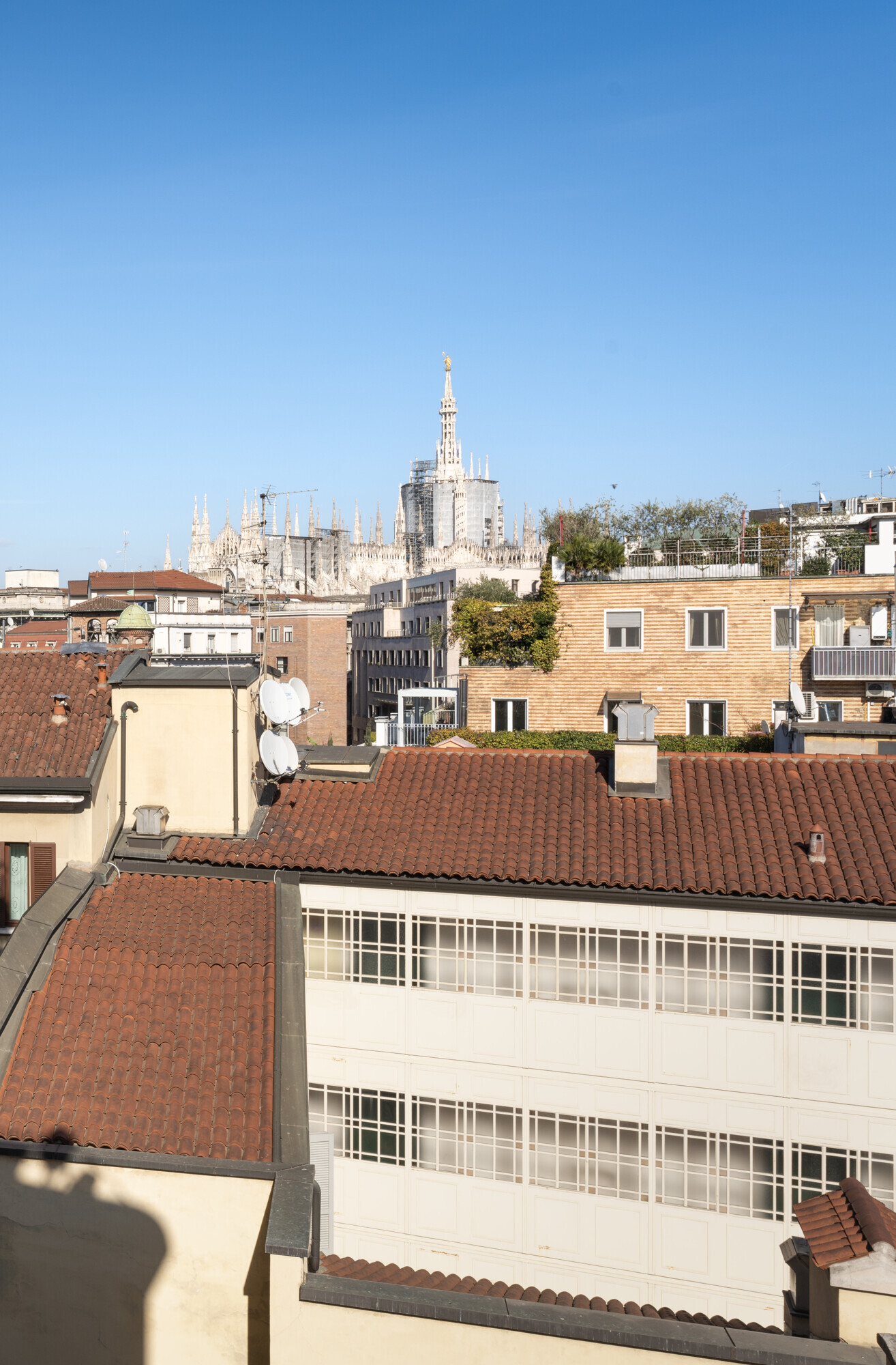 This residence tells the story of the city’s history through its original architectural details, blending harmoniously with the timeless charm of the historic center. From its large windows there is an enchanting view that embraces the Duomo, an eternal symbol of beauty and majesty, and extends to the Velasca Tower, an icon of 20th-century Milanese architecture.