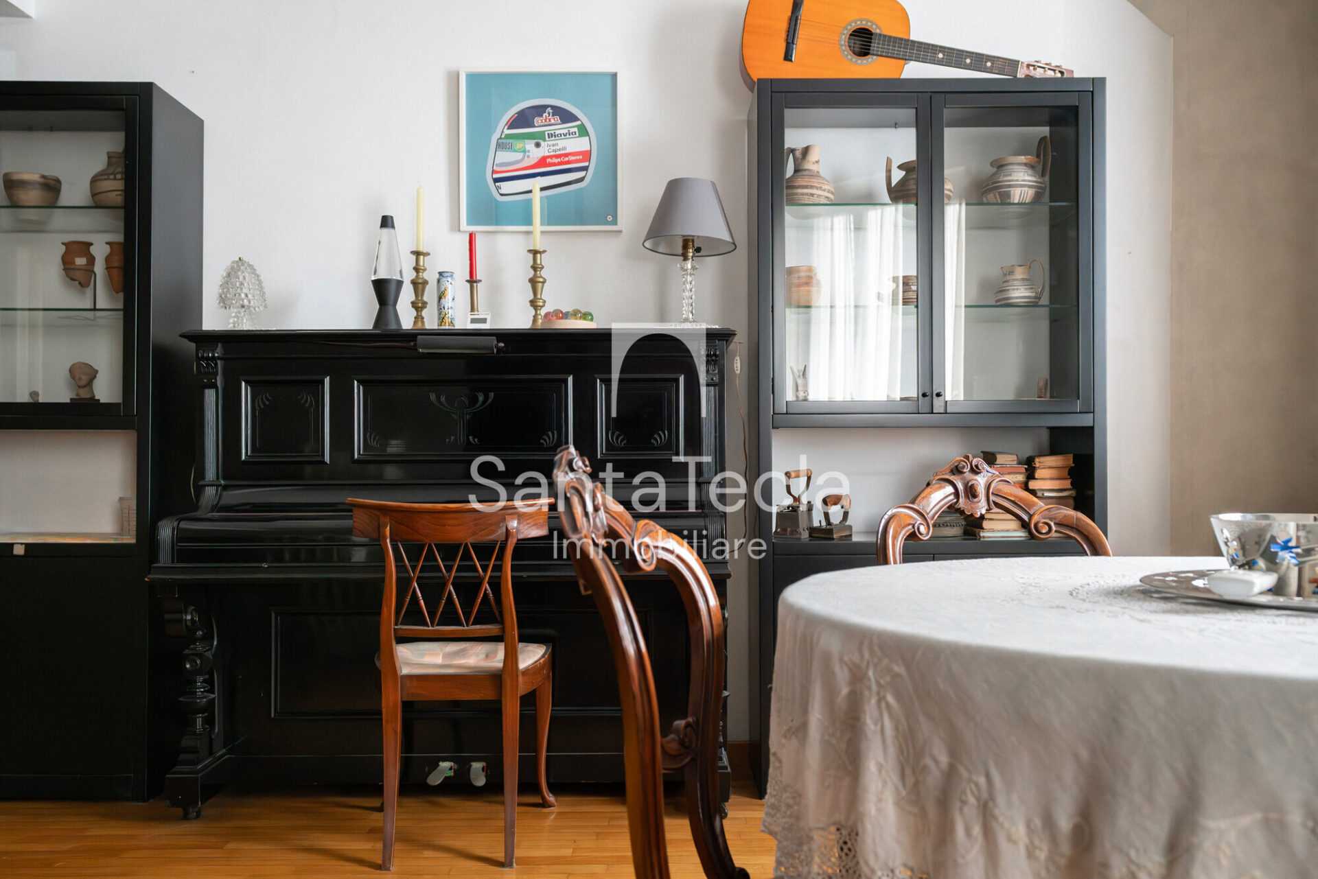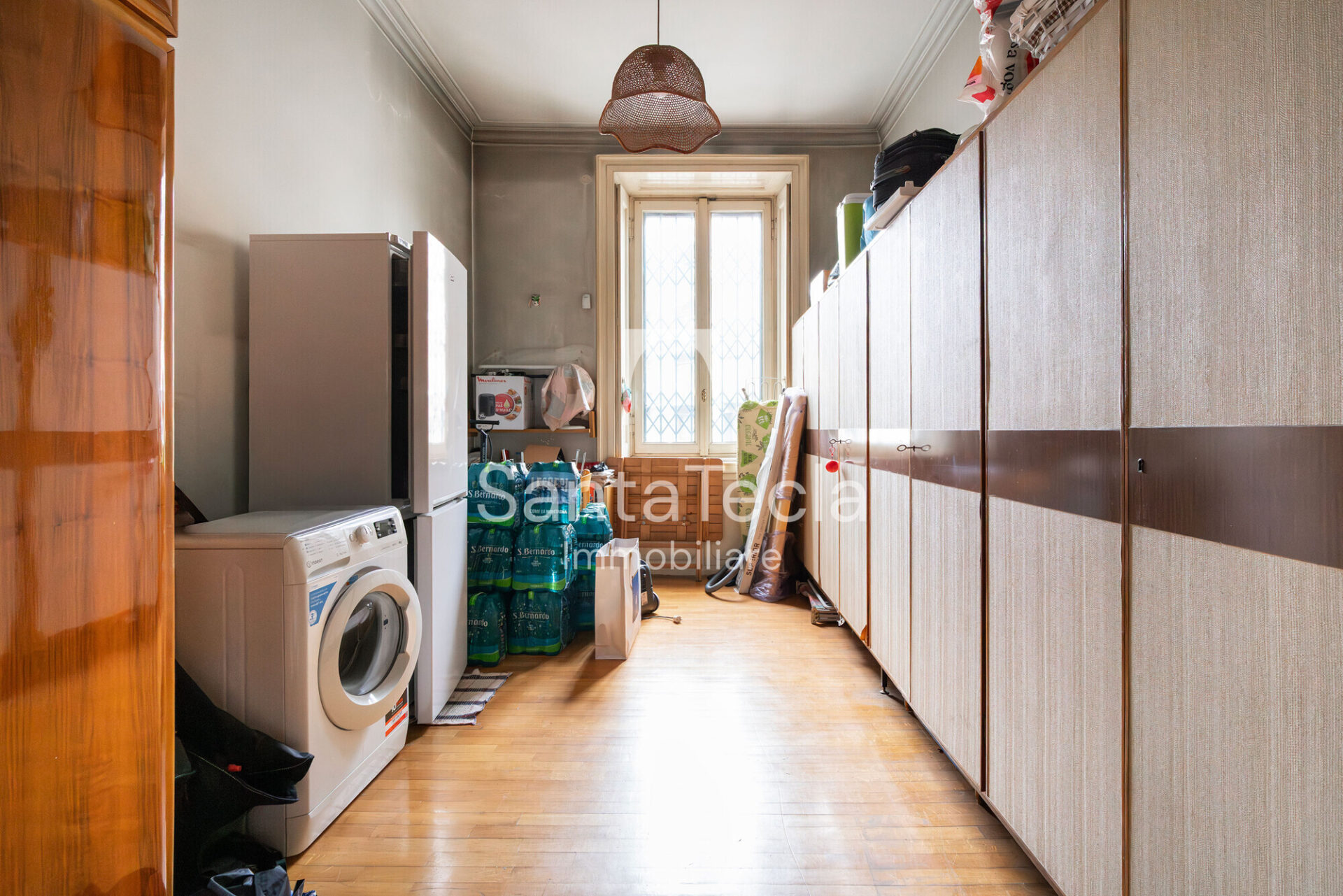 L’ingresso si apre su un ampio e luminoso soggiorno con zona pranzo e un bellissima Stufa in Ghisa, caratterizzato da una doppia finestratura che affaccia sul tranquillo cortile interno, garantendo luce naturale e privacy. Dal soggiorno si accede a un disimpegno che conduce a un bagno per gli ospiti, una pratica lavanderia e alla cucina abitabile realizzata su misura da un artigiano brianzolo, dotata di una isola centrale in marmo bianco di Carrara. La cucina, inclusa nella vendita, dispone di una finestra con affaccio diretto su Via Paolo Sarpi.