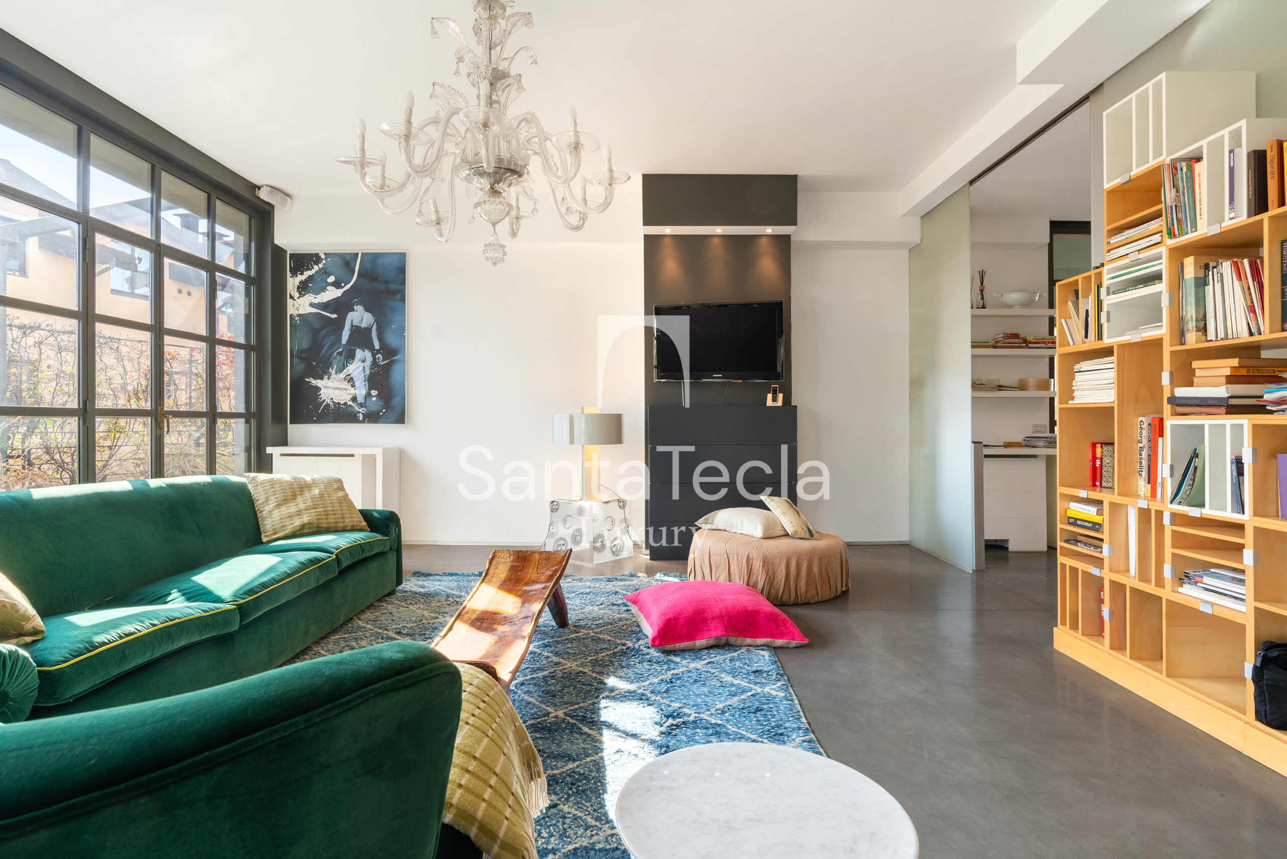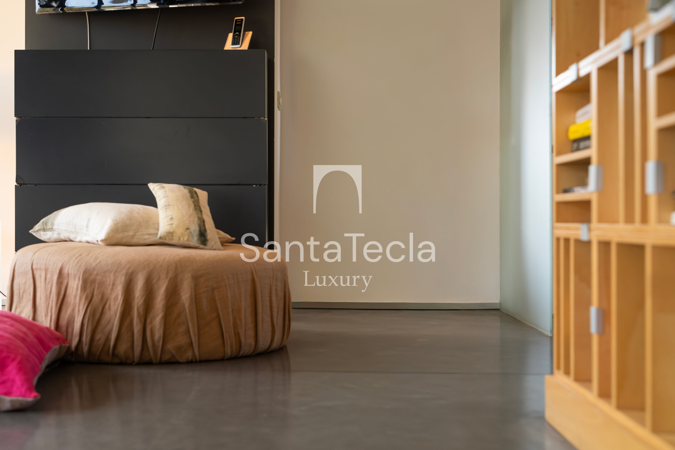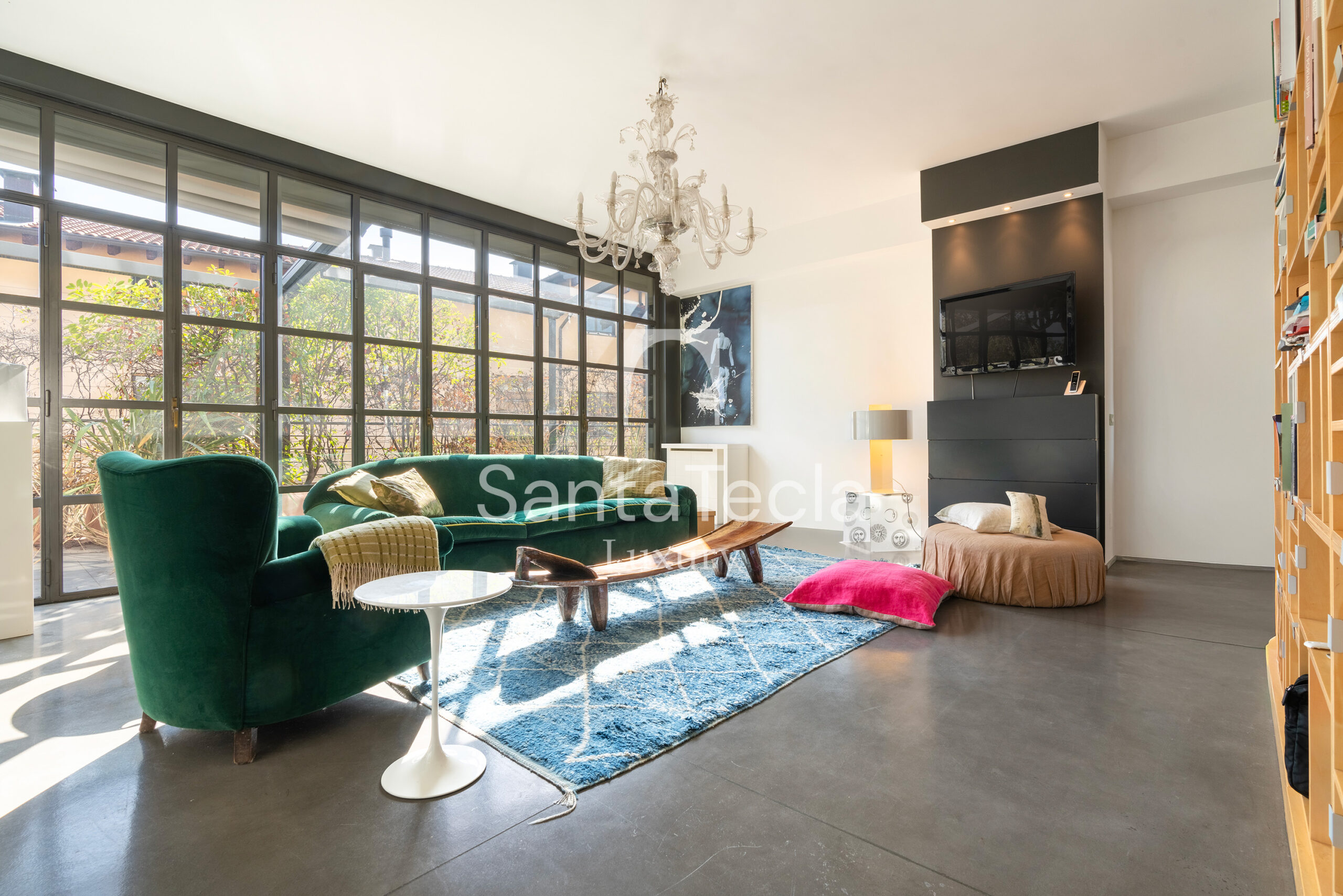L’immobile è stato ristrutturato e completamente arredato con gusto ed eleganza, sfruttando al massimo gli spazi e creando un’atmosfera moderna e accogliente. I pavimenti sono in cemento dal sapore loft. Finestre e vetrate sono in vetrocamera con telaio in metallo. Il riscaldamento e raffrescamento sono condominiali ad aria.